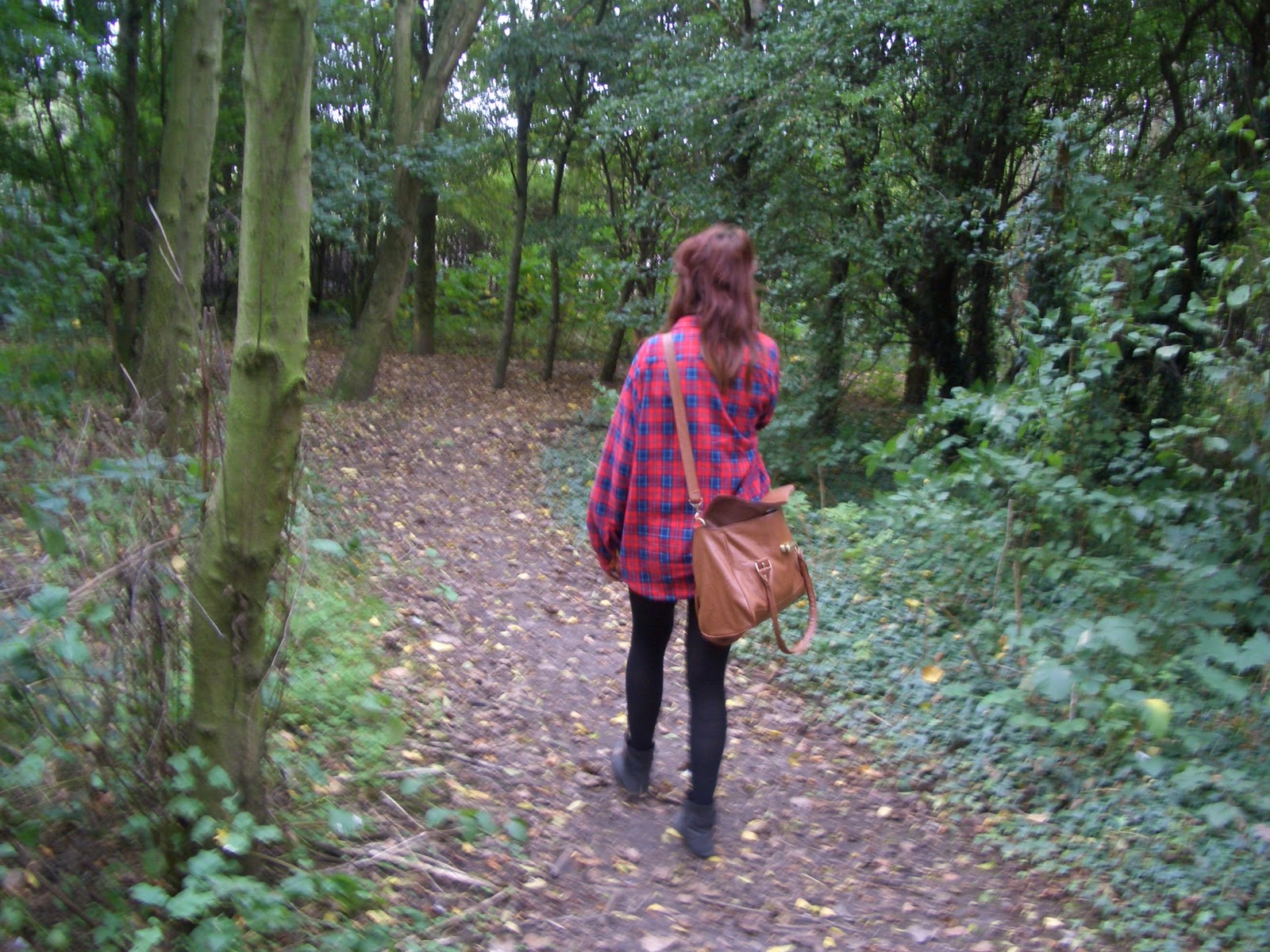 Holly, again startled by a noise, feeling like she’s being followed, runs, losing the forest track. She finds it again.